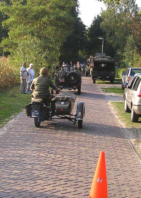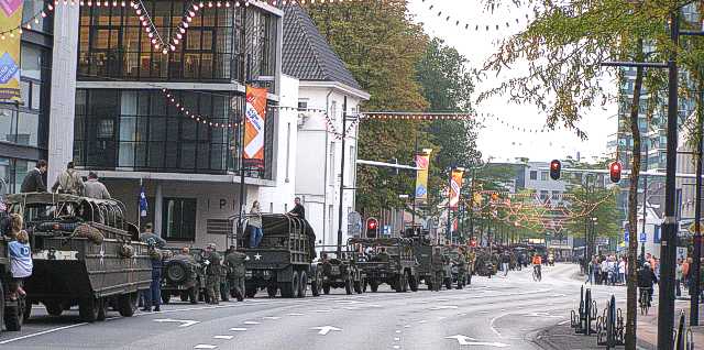 Het fakkeldefilé in Eindhoven ter gelegenheid van 65 jaar bevrijding. De Bravo Compagnie verleent steun aan