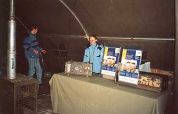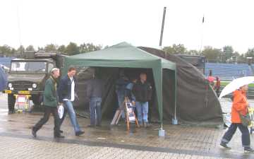 In de boogtent werd de display ingericht met onderdelen van DAF en NEKAF. De tentkachel is vrijdagavond aangestoken en heeft het hele weekend gebrand.