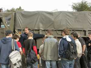 Voor deze gelegenheid waren een DAF vrachtwagen, een DAF Ralleywagen en DAF legerwagen op het schoolplein aanwezig.