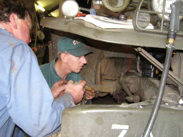 Roel en Piet bezig met het monteren van het spruitstuk.