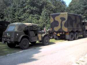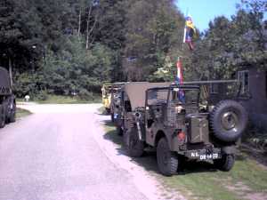 Zo'n 35 voertuigen deden aan de rit mee van klein (Harley Davidson) tot groot (DAF YA328) en van jong (DAF 66YA) naar oud (Willys MB) .