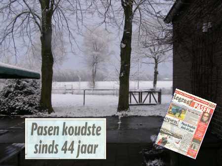 Dit jaar viel pasen extreem vroeg (23 en 24 maart). In de dagen voorafgaande waarschuwde het KNMI voor winterse omstandigheden. En op tweede paasdag werden we verrast met een witte paas. Er lag een laagje sneeuw. Deze smolt al snel weer weg.