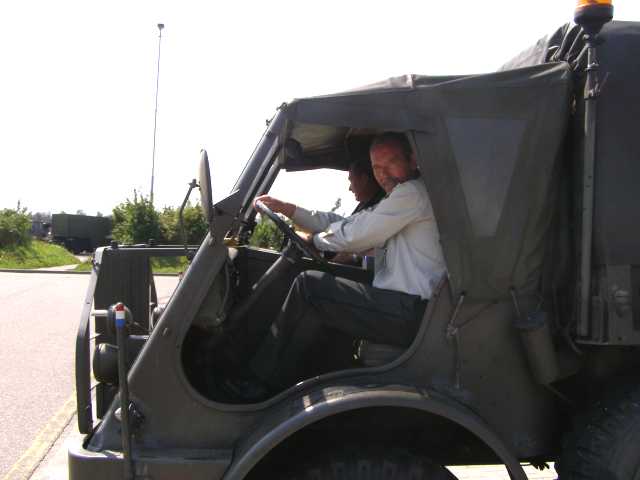Voor de ceremonie maakte Hans weer kennis met twee oude bekenden: de DAF YA328 en DAF YA126. Dit waren de eerste voertuigen waarop hij rijinstructeur was bij de Rijschool Venlo. Dus even kijken of Hans het niet verleerd is....