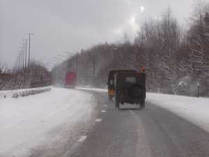 Onder winterse omstandigheden en met veel sneeuw reden we naar Luxemburg. Op deze dag liep al het verkeer in België vast en stond er 1000 km file. We hadden 1 uur oponthoud bij Luik. Verder verliep de reis voorspoedig...