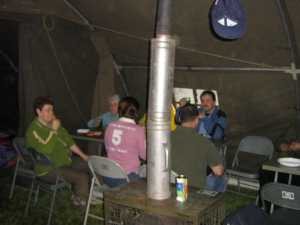 Het opbouwen van ons kamp. Terwijl we bezig waren begon het te regenen en hard te waaien.