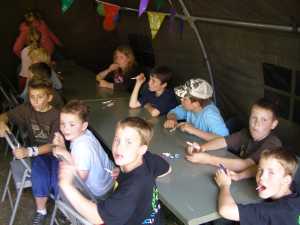 Iedereen wacht vol in spanning op de bingo in de legertent.