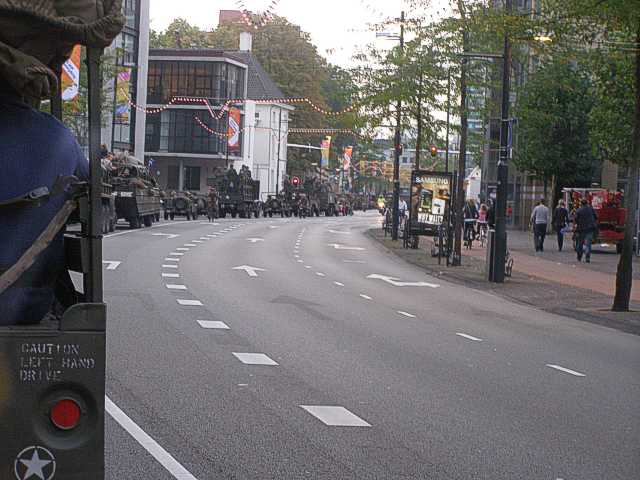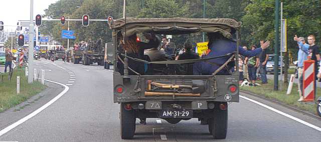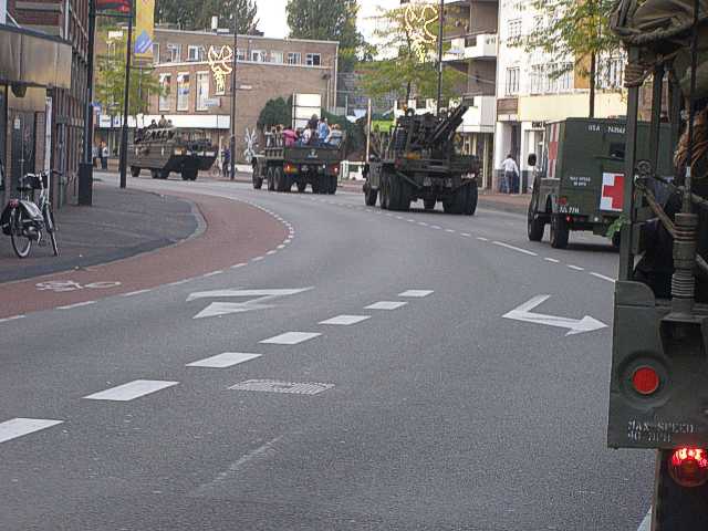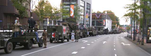 Het fakkeldefilé in Eindhoven ter gelegenheid van 65 jaar bevrijding. De Bravo Compagnie verleent steun aan