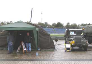 In de boogtent werd de display ingericht met onderdelen van DAF en NEKAF. De tentkachel is vrijdagavond aangestoken en heeft het hele weekend gebrand.