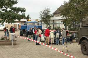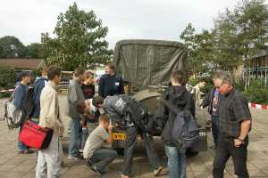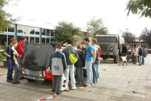 Voor deze gelegenheid waren een DAF vrachtwagen, een DAF Ralleywagen en DAF legerwagen op het schoolplein aanwezig.