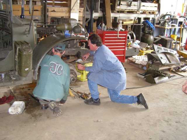 Roel en Piet bezig met het monteren van het spruitstuk.