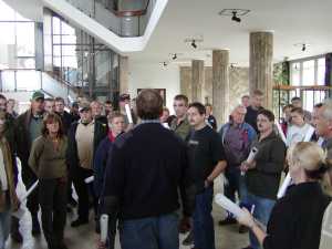 Eerst kregen we een film te zien. Hierna werden we met treintjes door de fabriek geleidt. We zagen hoe de ruwe motoren werden nabewerkt en geassembleerd, hoe tandwielen van assen werden gemaakt en hoe de complete vrachtwagen werd samengesteld.