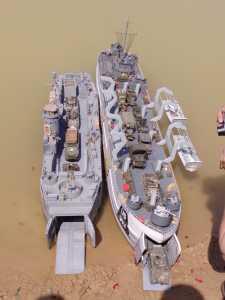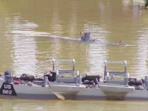 Op 6 juni voerde een groep Franse modelbouwers een demonstratie uit in de vijver van onze camping. Compleet met geluid- en lichteffecten, duikende onderzeëers, zinkende schepen en rijdende tanks.