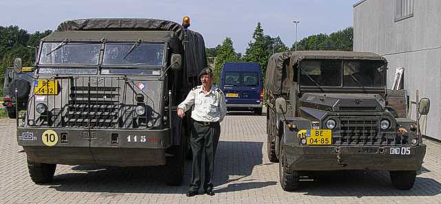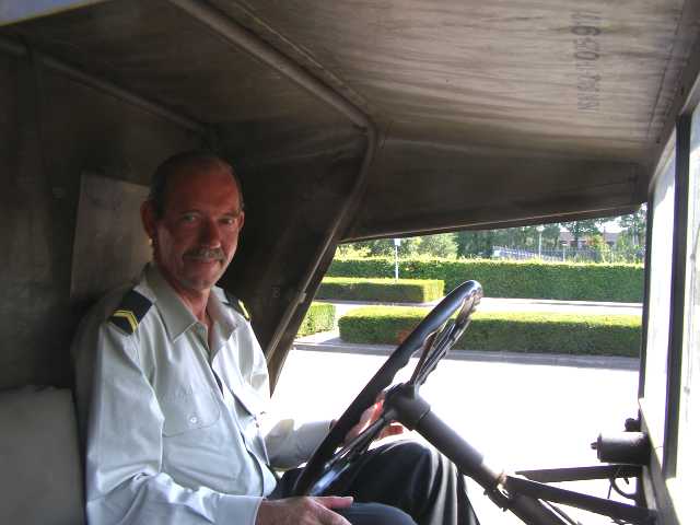 Voor de ceremonie maakte Hans weer kennis met twee oude bekenden: de DAF YA328 en DAF YA126. Dit waren de eerste voertuigen waarop hij rijinstructeur was bij de Rijschool Venlo. Dus even kijken of Hans het niet verleerd is....