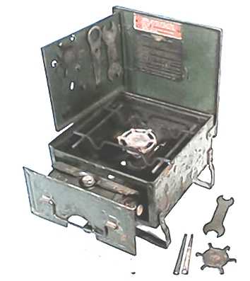 Het leger vecht niet op een lege maag. Behalve veldkeukens, die voor complete eenheden zoals pelotons en compagnieën dienen, zijn er ook kleinere kooktoestellen voor kleine groepen. Deze modellen branden op benzine. Hierin wordt de benzine onder druk gezet en vergast en dan verbrandt. Op de hitte kan gekookt worden.