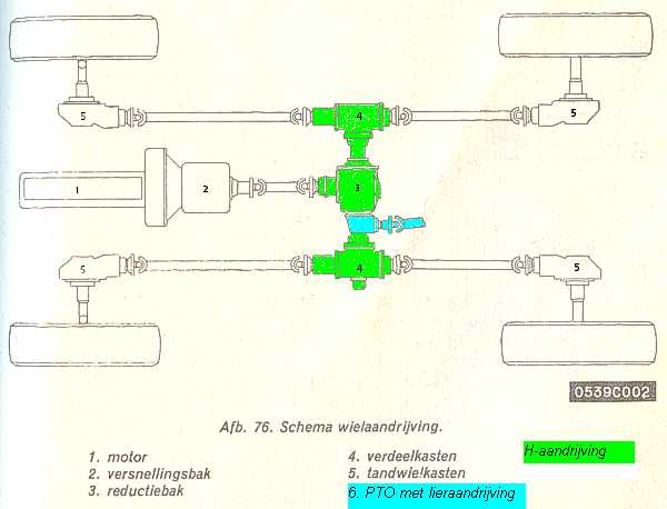 In de H-aandrijving (*) zit slechts een centraal differentieel. Hierdoor zijn, zodra de voorwielaandrijving ingeschakeld is, de wielen aan een zijde van het voertuig gesperd zijn (lengte-sper). Hierdoor zijn de terreineigenschappen goed.