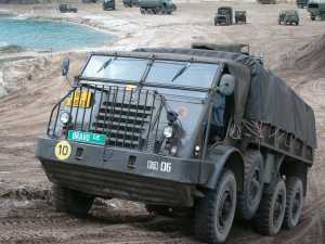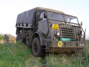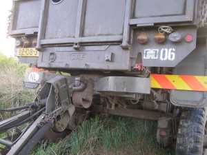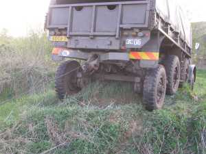 De lier kan ook gebruikt worden om naar voren te lieren. Een YA328 met lier heeft hiervoor een kabel (zie (A) op onderstaande foto) die van achteren onder de auto naar voren loopt en met een veer aan het takkenrek vastzit.